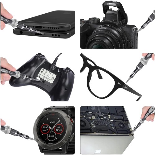 ?Wide applications?138IN1 Precision Screwdriver Kit contains 117 types of bits (Phillips, Flat, Torx, Triwing, Pentagon, etc.) and 21 accessories such as extension rods, flexible extension shaft, extension bit holder and magnetizer, magnetic mat, pry bars, triangle picks, Suction Cups for MacBook, Laptop, Tablet, PC, Cell Phone, PS4, Xbox, Camera and other Home Appliances. Whether you?re a professional or a hobbyist, this Repair Tool Kit will solve all your repairs.