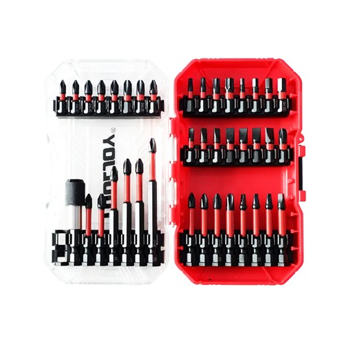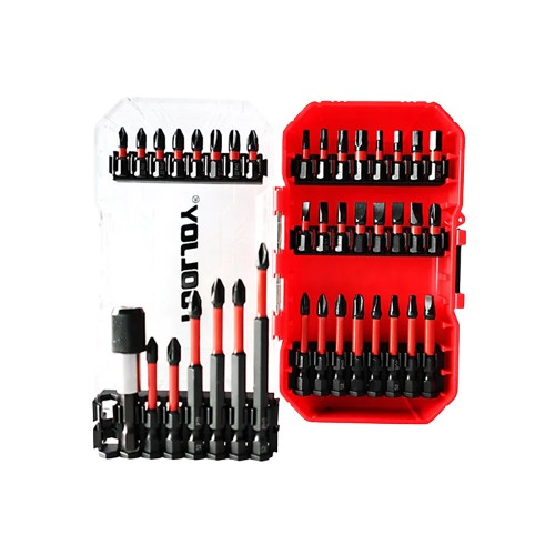 24pcs 25mm bits: PH1*2,PH2*3,PH3*2,PZ2,T15,T20,T30,T40,H3,H4,H5,H6,SL4,SL5*2,SL6*3,SL7,PZ3