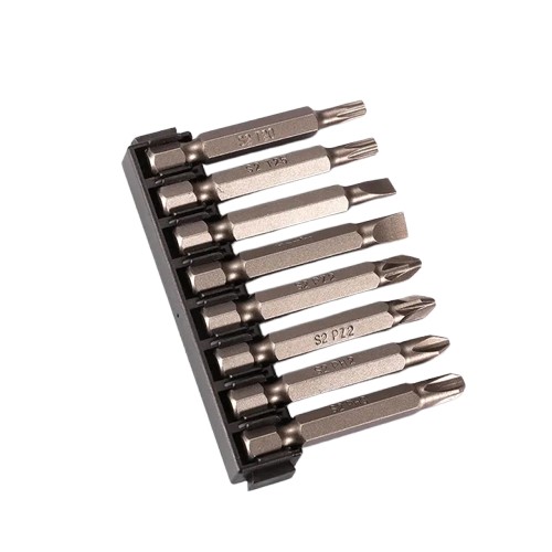Set Includes: 10pcs 50mm Bits: Phillips: PH1,PH2, PH3; Pozi:PZ1, PZ2, PZ3; Torx:T15, T20, T25, T30;