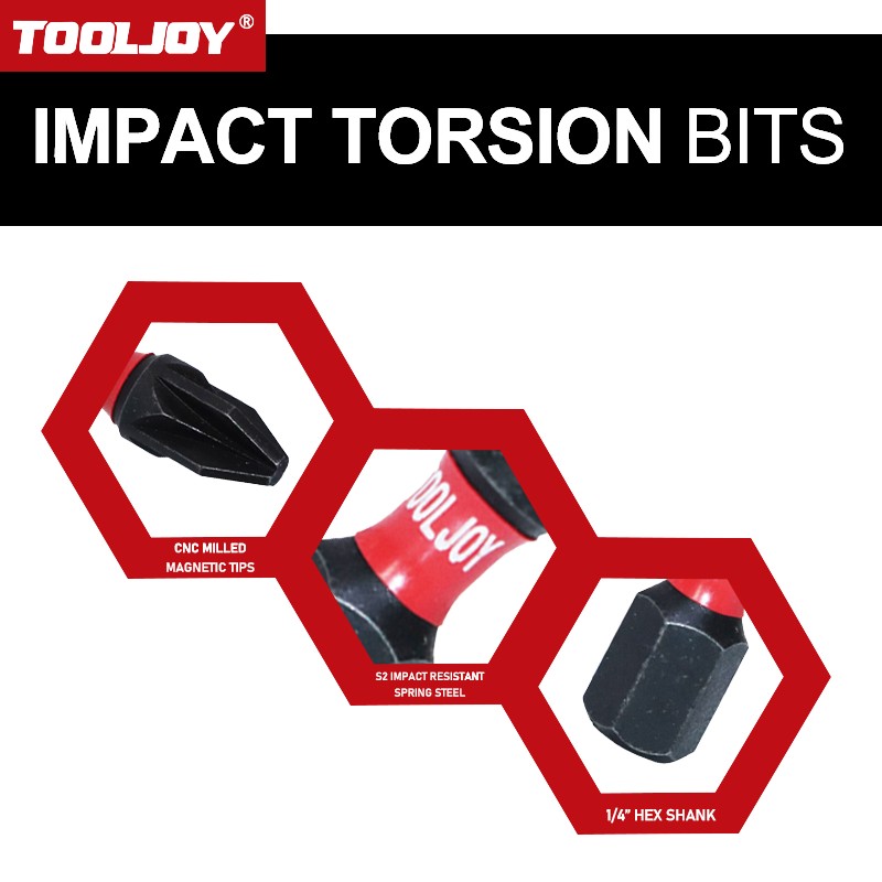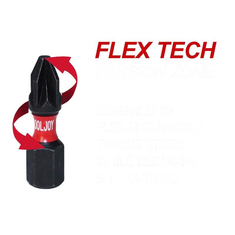 IMPACT TORSION tool bits are engineered to meet the rigorous demands of professional and industrial users. The optimized FLEX TECH TORSION ZONE flexes under load to take pressure off of the bit tip and reduce bit fracture resulting in less breakage.