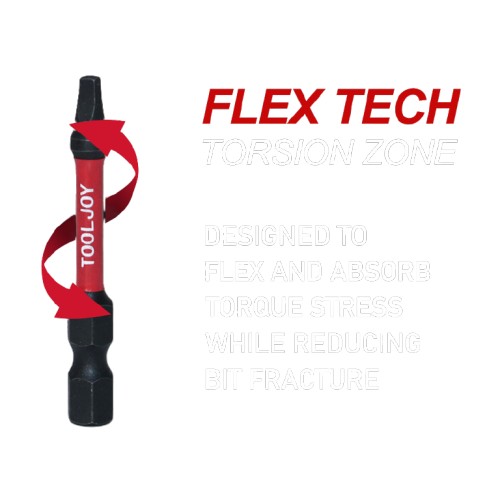 IMPACT TORSION tool bits are engineered to meet the rigorous demands of professional and industrial users. The optimized FLEX TECH TORSION ZONE flexes under load to take pressure off of the bit tip and reduce bit fracture resulting in less breakage.